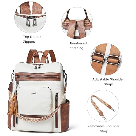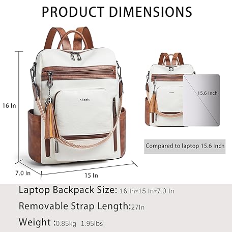• Shrrie Vegan Leather Laptop Backpack for Women 15.6 inch Work Backpack Fashion Travel Backpack Purse for Travel College Work