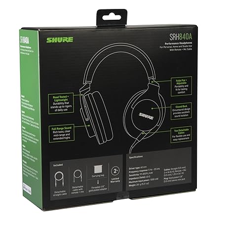 Thông tin sản phẩm Shure SRH840A Professional Over-Ear Wired Studio Headphones – Critical Listening & Monitoring Headset with Tailored Frequency Response, Detailed Sound, Adjustable & Collapsible Design, Black