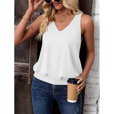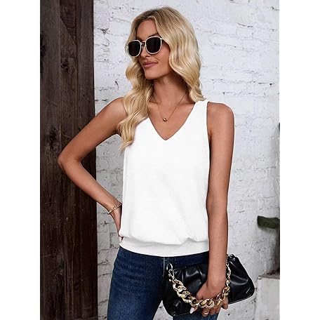 • Sialois Womens Tank Tops Casual V Neck Sleeveless Summer Spring Clothes Loose Fit Cute Outfit Basic Cami 2025 Fashion Shirts