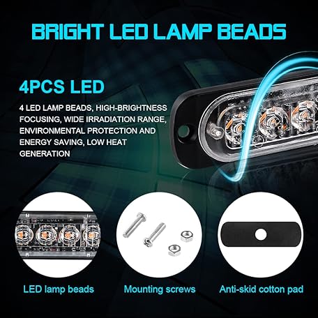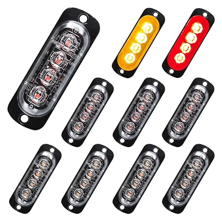 Sidaqi 10PCS Amber Red 4-LED Trailer lights Surface Mount Clearance Lights Side Marker Lights Waterproof LED Trailer Marker Lights for Truck Boat RV Tractor Motorcycle Van Front Rear 12-24V