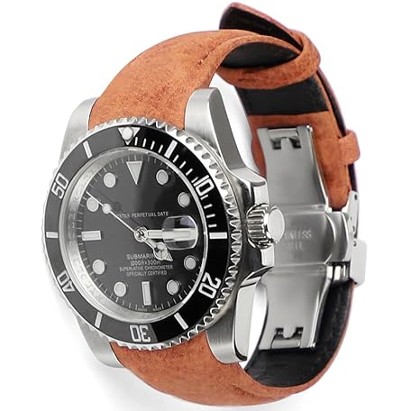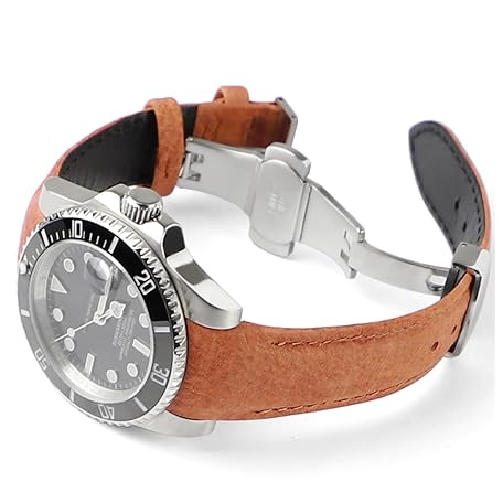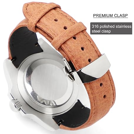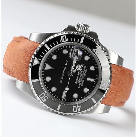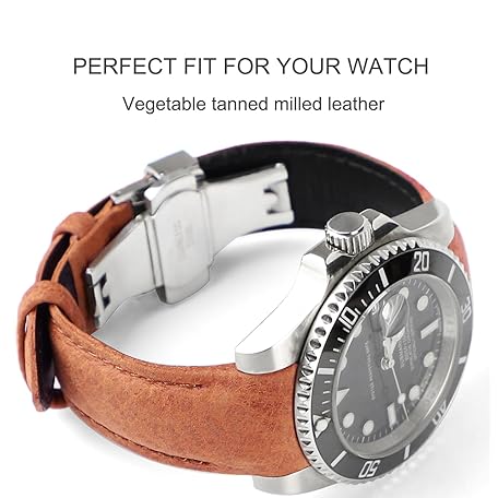 Sight Focus 20mm Curved End Retro Leather Watch Band for Rolex Submariner 40mm,Daytona,GMT-Master 40mm,Yacht-Master,Explorer I Leather Watch Strap Replacement Rolex Bracelet Men Women