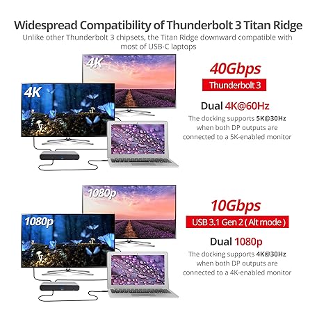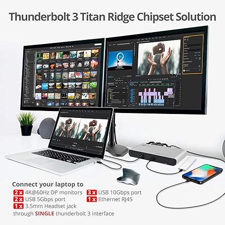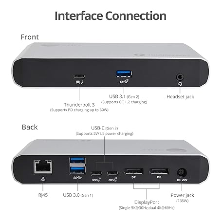 Thông tin sản phẩm SIIG Thunderbolt 3 or USB C Dual 4K Display Docking Station with 60W PD- Titan Ridge (2X DP 1.2, 1x USB-A/2x USB-C 10Gbps, 2X USB-A 5Gbps, Ethernet) for Windows&Mac M1/M2/M3 Pro/Max (JU-DK0C11-S1)
