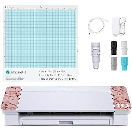 Thông tin sản phẩm Silhouette Cameo 4 with Bluetooth, 12x12 Cutting Mat, Autoblade 2, 100 Designs and Silhouette Studio Software - Pink Pattern Edition