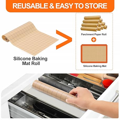 Silicone Baking Mat Roll, Non Stick Heat Resistant Baking Mats,No Slip Reusable Freeze Dryer Mat,Pastry Mats,Countertop Mats, Cut to size fit different Sharp Oven Pans Dishes(Beige, 16in X5.25 FT)