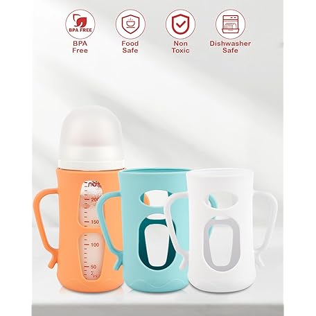 Thông tin sản phẩm Silicone Sleeves with Handles for Pigeon Glass Bottle, 3 Pack Anti Breakage Baby Bottle Holder, 8.1oz
