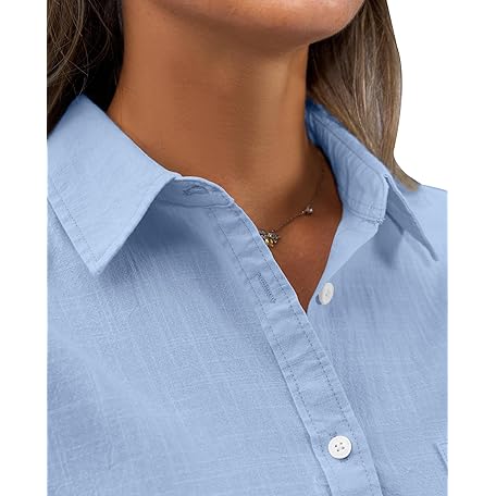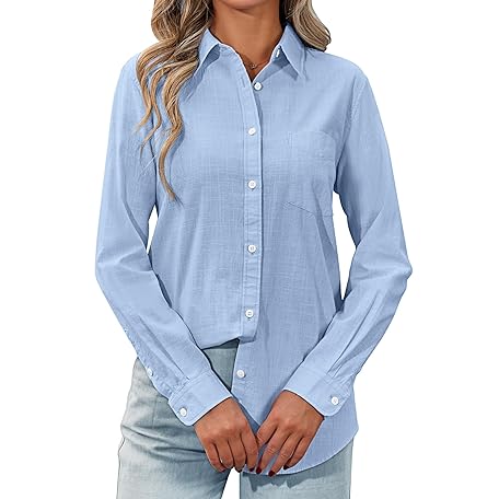 • siliteelon Womens Button Down Shirt Linen Button Up Shirts for Women Long Sleeve Summer Shirt Collared Blouse Linen Tops