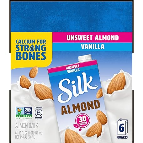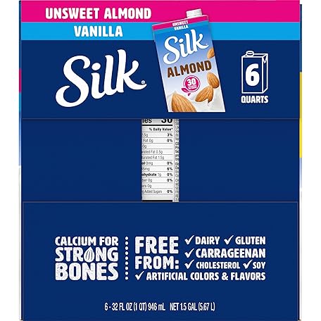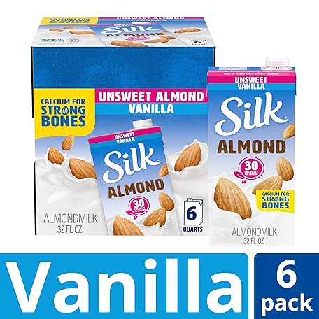 Thông tin sản phẩm Silk Shelf-Stable Almond Milk, Unsweetened Vanilla, Dairy-Free, Vegan, Non-GMO Project Verified, 1 Quart (Pack of 6)