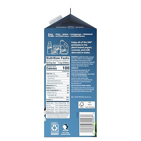 Thông tin sản phẩm Silk Soy Milk, Vanilla, Dairy Free, Gluten Free, Vegan Milk with Vitamin D to Help Support Strong Bones, 64 FL OZ Half Gallon