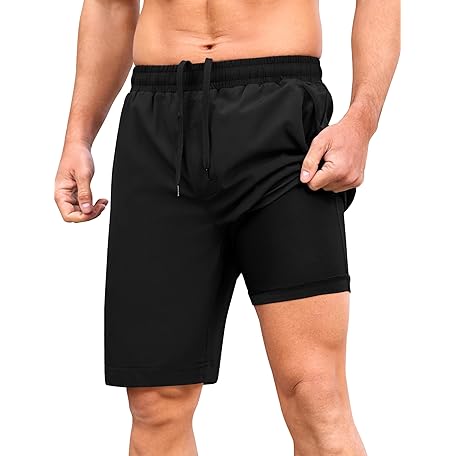 SILKWORLD Running Shorts for Men Quick Dry 9 Inch Basketball Athletic Shorts 2 in 1 Gym Workout Shorts with Pockets