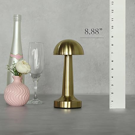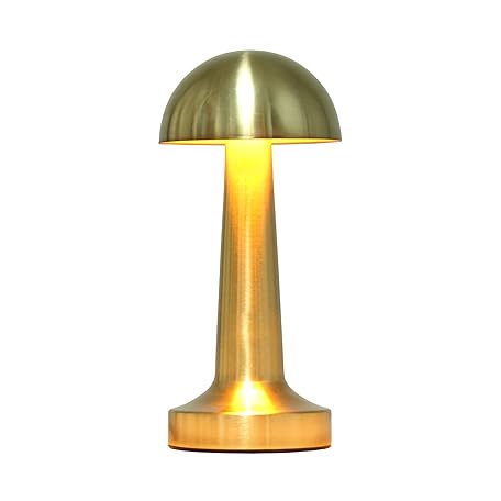 Simple Designs LD1081-GLD 8.88" Mushroom Magic Mini Metal Dimming & Rechargeable Cordless 4-Way Touch Sensor Dome Desk Lamp, Gold
