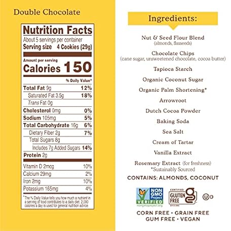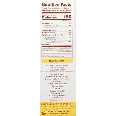 Thông tin sản phẩm Simple Mills Almond Flour Crunchy Cookies, Double Chocolate Chip - Gluten Free, Vegan, Healthy Snacks, Made with Organic Coconut Oil, 5.5 Ounce (Pack of 1)