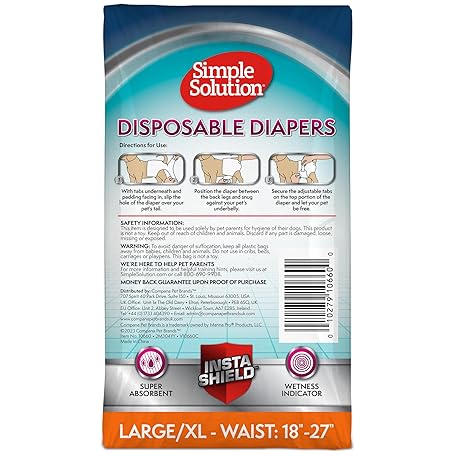 Thông tin sản phẩm Simple Solution Disposable Dog Diapers, Female Dog Diapers, Puppy Potty Training, Incontinence and Heat Cycle Protection, Large Diapers for Dogs, 18-27 Inch Waist, 30 Count