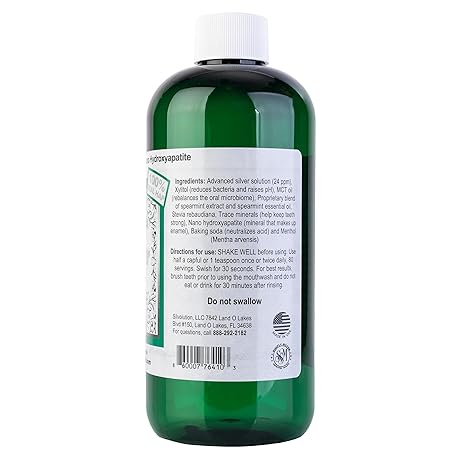 Thông tin sản phẩm Simply Silver Mouthwash Spearmint Flavor- Nano Hydroxyapatite Formula, All Natural Colloidal Silver Mouthwash Chemical, Alcohol, Fluoride, and BPA Free, 16 oz