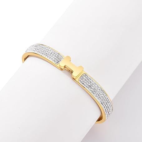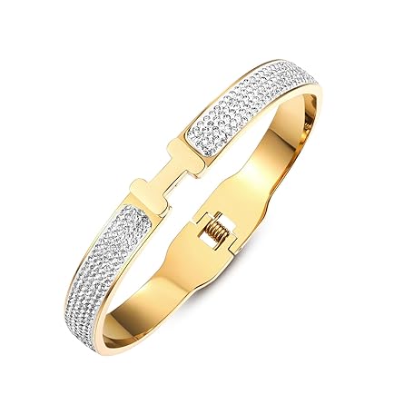 Sản phẩm sineed 18K Gold Plated Bangle Bracelets for Women Stainless Steel with Cubic Zirconia Fashion Jewelry đang được bán với giá ưu đãi là $18.5191 tại nước Mỹ.