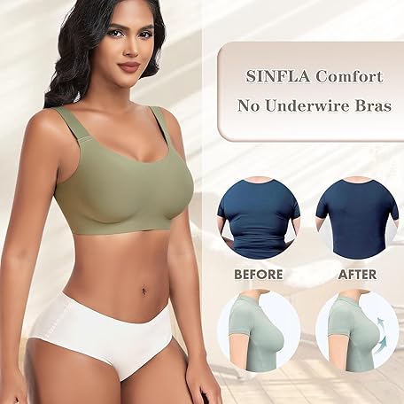 • SINFLA Wireless Bras for Women No Underwire Seamless Full Coverage Comfortable Everyday Bra with Medium Support