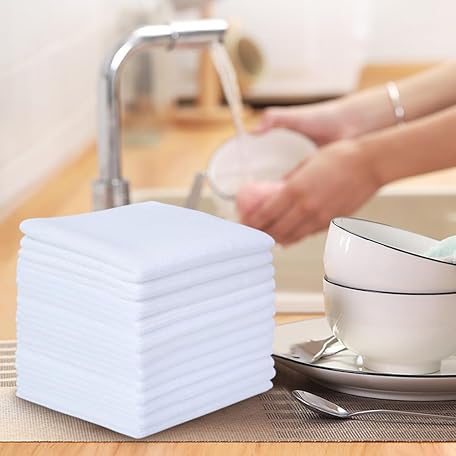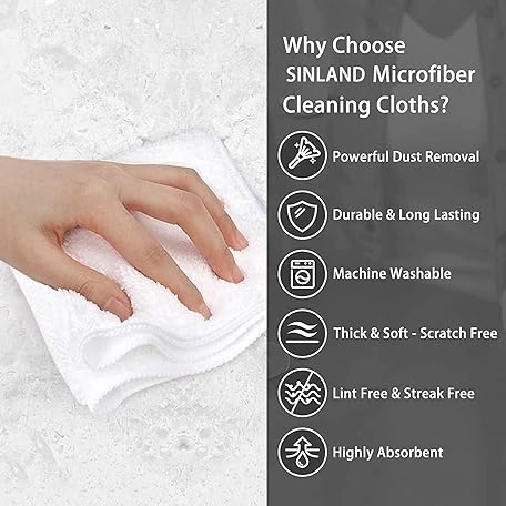 • SINLAND Microfiber Cleaning Cloth Dish Cloth Kitchen No Streak Absorbent Dish Rags Lens Cloths 12Inchx12Inch 12 Pack White