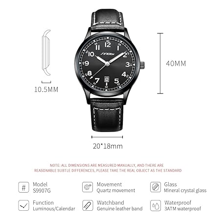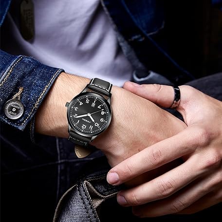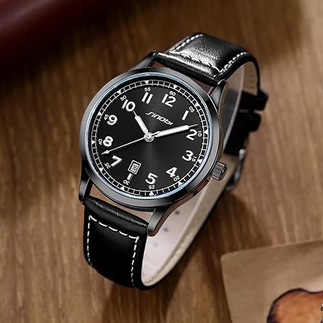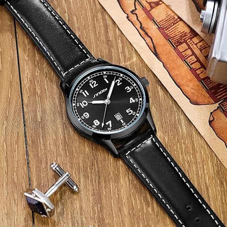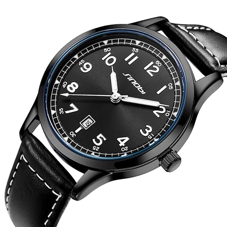 • SINOBI Classic Watches for Men with Calendar Water Resistant Luminous Easy Read Time Arabic Numerals Men Dress Watch (All-Black)