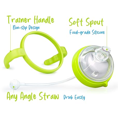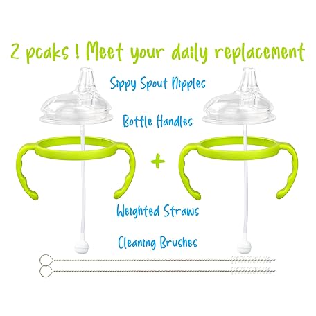 Thông tin sản phẩm Sippy Cup Soft Spout Conversion Kit for Comotomo Baby Bottles, Transition Sippy Cup Bundle Fits Comotomo, Sippy Spout Nipples Weighted Straw, Bottle Handles and Cleaning Brush, 2 Pack (Green)