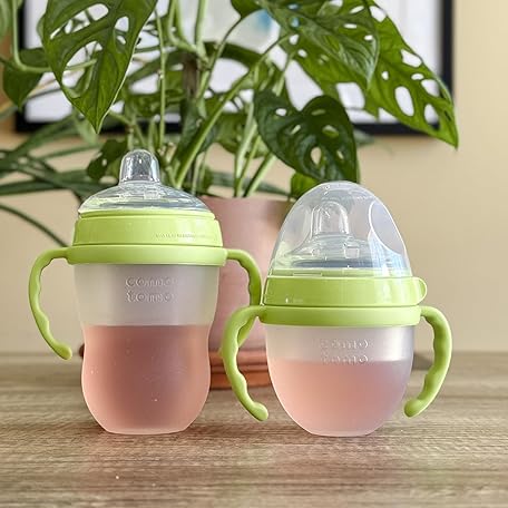 Thông tin sản phẩm Sippy Spout Nipples with Bottle Handles for Comotomo Baby Bottles 2-Pack Soft Food Grade Silicone Spout, Transition Nipples, Converts Baby Bottle to Sippy Cup, Spill Proof, BPA-Free, 4+ months (Green)