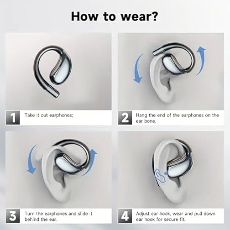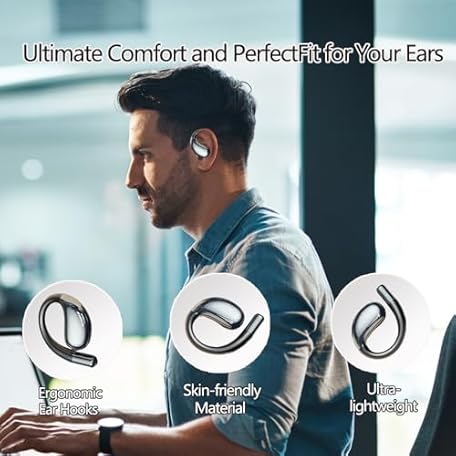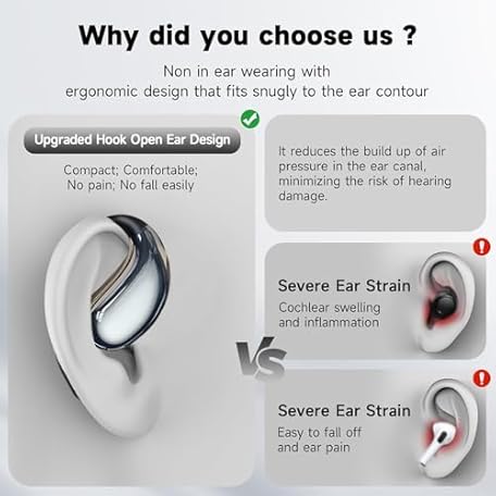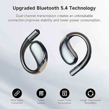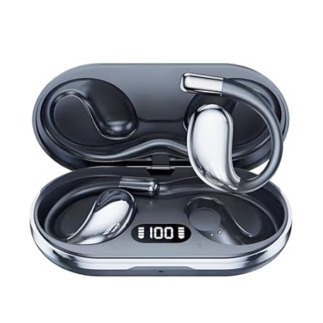 sixco New Open Ear Headphones Pain-Free Earbuds Wireless 5.4 Bluetooth Ear Buds with LED Digital Display Charging Case IP55, Touch Control Air Conduction Stereo Sound (Black)