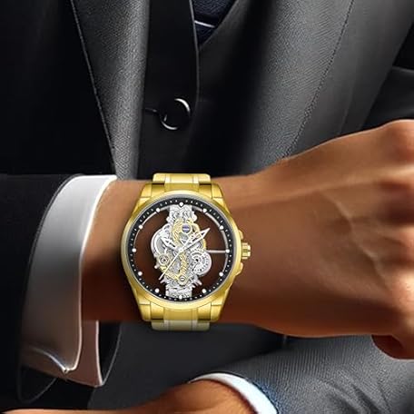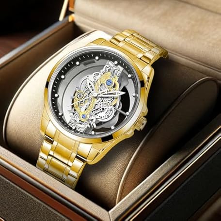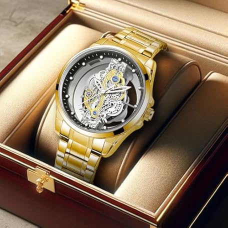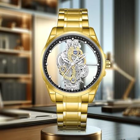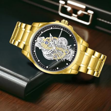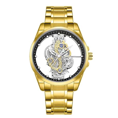 Skeleton Dial Watch, Gold-Tone Stainless Steel Band, Automatic Mechanical Movement