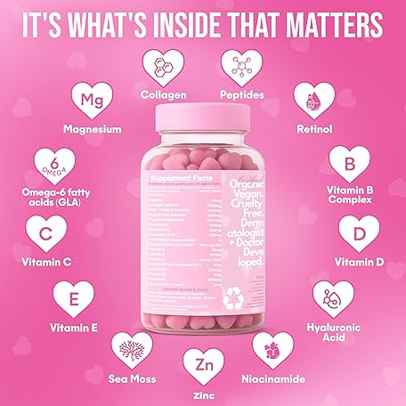 Sản phẩm Skin Gummies for Women - Beauty Vitamin Gummy with Multi Collagen Peptides, Hyaluronic Acid, Retinol, Vegan Colostrum, Sea Moss & Antioxidants for Hydrated Clear Youthful Glowing Acne-Prone Skincare đang được bán với giá ưu đãi là $30.52 tại nước Mỹ.