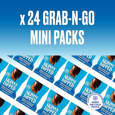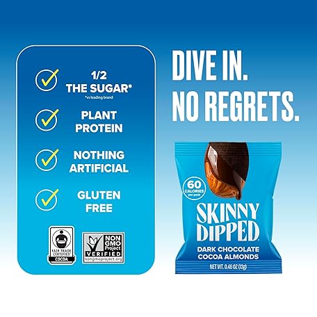 Thông tin sản phẩm SkinnyDipped Dark Chocolate Cocoa Almonds, Healthy Snack, Plant Protein, Gluten Free, 0.46 oz Mini Bags, Pack of 24