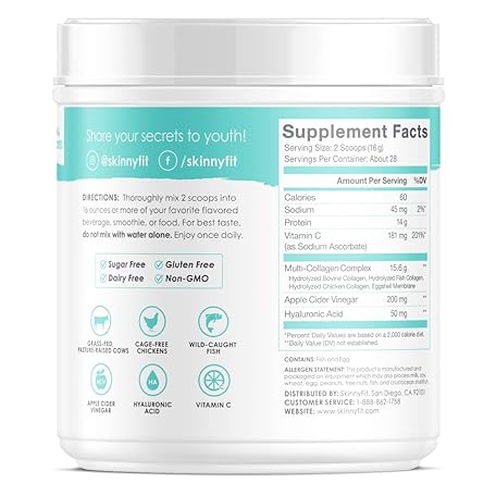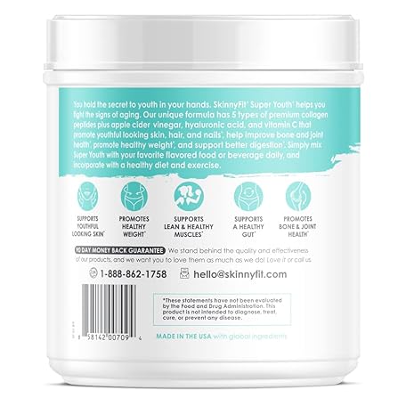 Thông tin sản phẩm SkinnyFit Super Youth Multi-Collagen Peptides Plus Apple Cider Vinegar, Hyaluronic Acid, & Vitamin C, Unflavored, Hair, Skin, Nail & Joint Support, Immunity, Healthy Metabolism, 28 Servings