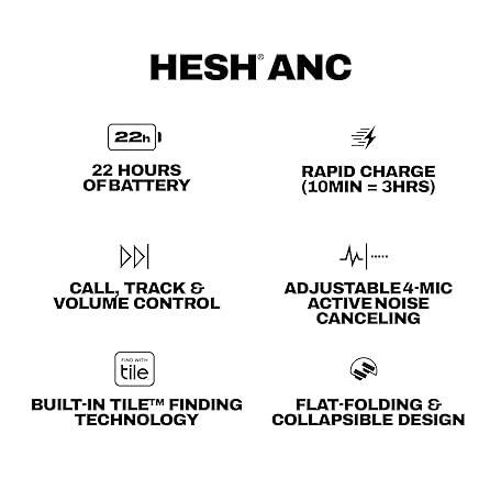 Thông tin sản phẩm Skullcandy Hesh ANC Wireless Over-Ear Bluetooth Headphones with Extra USB-C Charging Cable, Active Noise Canceling, 22 Hrs Battery, Foldable Lightweight Design, Microphone iPhone Android - True Black