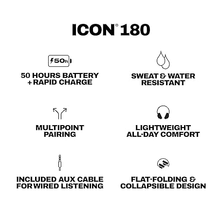 Thông tin sản phẩm Skullcandy Icon 180 Wireless On-Ear Bluetooth Headphones, Up to 50 Hours Battery, Lightweight and Travel Ready, Secure Fit, Sweat and Water Resistant, Microphone iPhone Android - True Black