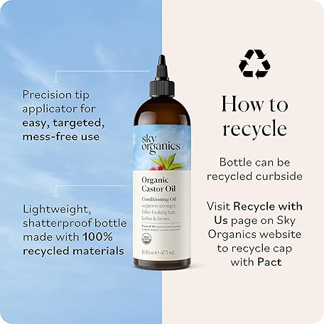 Thông tin sản phẩm Sky Organics Castor Oil - USDA Certified Organic Hair Oil for Hair Growth, Skin, Face, Eyelashes - Cold Pressed & Hexane Free - Pure Organic Castor Oil Pack Wrap - Carrier & Hair Treatment Oil -16oz