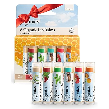 Thông tin sản phẩm Sky Organics Organic Lip Balms With Beeswax for Lips, USDA Certified Organic, Six Assorted Flavors to Moisturize, Soothe & Soften, 6pk.