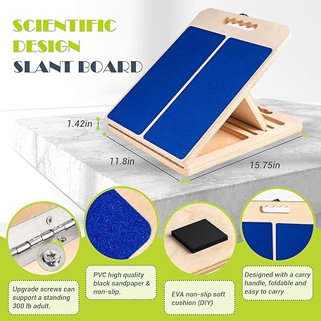 • Slant Board for Calf Stretching, Adjustable Portable Wooden Incline Board for Calf Stretcher with Training Poster, 300 Lbs Weight Capacity Calf Stretch Wedge for Leg, Knees, Heel, Ankle & Stretching