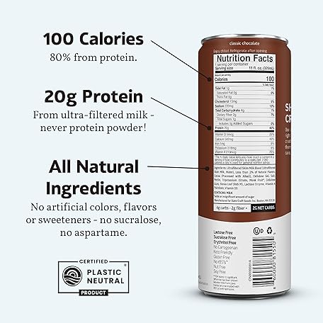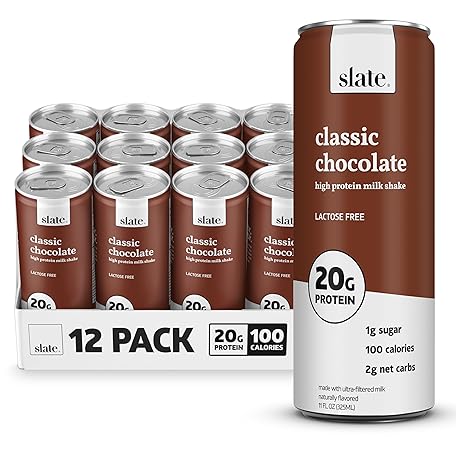 Thông tin sản phẩm Slate Milk - High Protein Milk Shake - Classic Chocolate - Lactose Free, 20g Protein, 1g Sugar, 100 Calories, 2g Net Carbs, No Added Sugar - Natural, Breakfast Boost, Post Workout - 11 fl oz, 12 Cans
