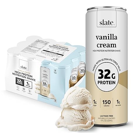 Slate Milk - High Protein Nutrition Shake - Vanilla Cream - 32g Protein, 1g Sugar, 150 Calories, 1g Net Carbs - Lactose Free - No Added Sugar - Breakfast Boost, Post Workout - 11 fl oz, 12 Cans