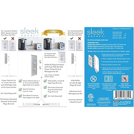 Thông tin sản phẩm Sleek Socket Original & Patented Ultra-Thin Outlet Concealer with Cord Concealer Kit, Flat Extension Cord with Multi Outlets Power Strip, Ideal for Home Improvement, Hide Bulky and Messy Cords