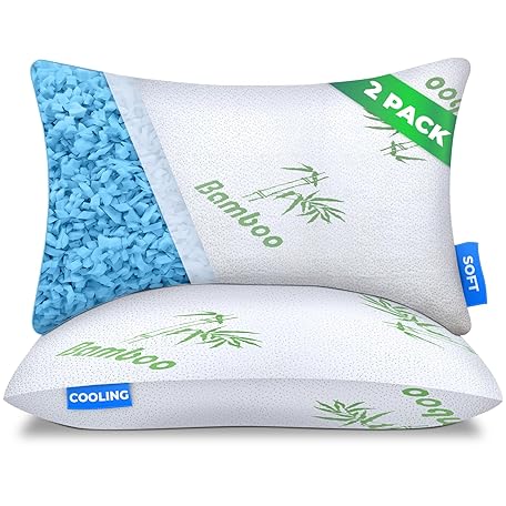 Sleepavo Adjustable Cooling Pillows Queen Size Set of 2 Pack - Extra Soft Shredded Memory Foam Best Pillows for Sleeping - Back, Stomach, Side Sleeper Pillow Medium Firm - Rayon Derived from Bamboo