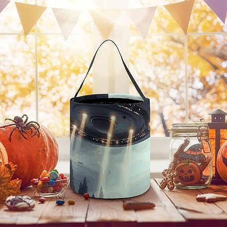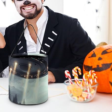Sản phẩm SLKMHFT Collapsible Halloween Tote Candy Bag UFO Landing Printed Candy Bucket Reusable Candy Basket with Handles for Halloween Party Christmas Party Storage đang được bán với giá ưu đãi là $20.4811 tại nước Mỹ.