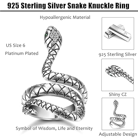 Sản phẩm Sllaiss 925 Sterling Silver Snake Ring for Women White Gold Plated Vintage Punk Rings Adjustable Open CZ Animal Snake Finger Ring Jewelry đang được bán với giá ưu đãi là $22.8791 tại nước Mỹ.
