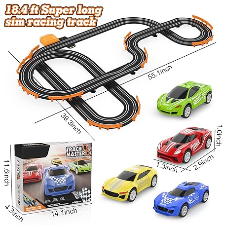 Sản phẩm Slot Car Race Track Sets with 4 High-Speed Racing Car, Battery or Electric Race Car Track for Boys and Kids, Dual Racing Game Lap Counter Circular Overpass Track, Gifts Toys for Boys Kids Age 6 7 8-12 đang được bán với giá ưu đãi là $59.9391 tại nước Mỹ.