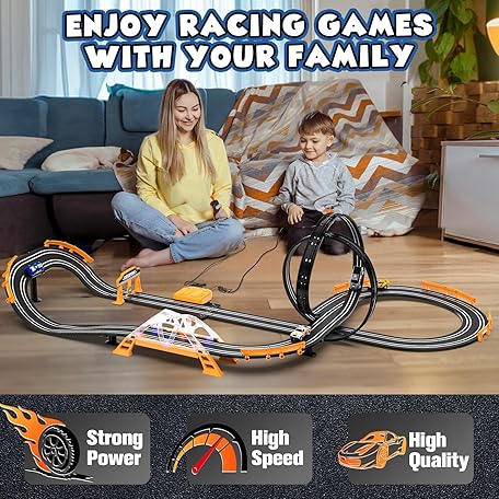 Sản phẩm Slot Car Race Track Sets with 4 Slot Cars, Electric Race Car Track Include Slope Circular Overpass Track, Dual Racing Game Featuring Flash Bridge and Pendulum, Gifts Toys for Boys Kids Age 6 7 8-12 đang được bán với giá ưu đãi là $54.4782 tại nước Mỹ.