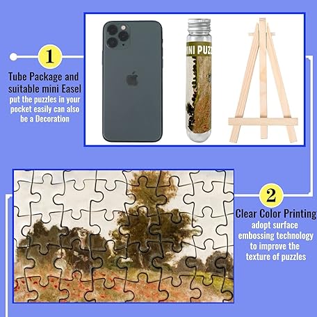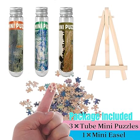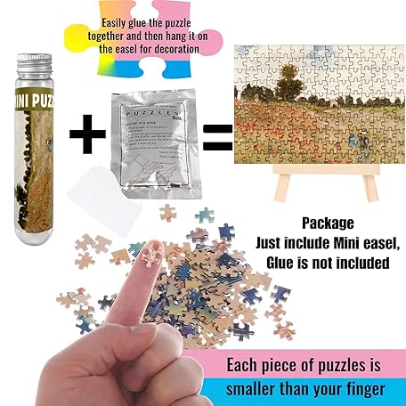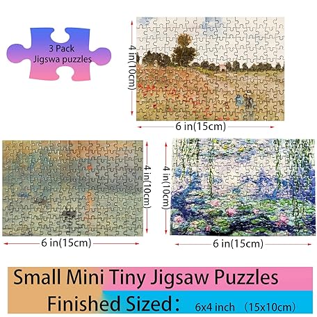 • Small Jigsaw Puzzles for Adults 150 Pieces Oil Painting by Monet Sunrise Mini Puzzles Challenging =6 x 4 Inches, 3 Pcs,Mini Easel Included