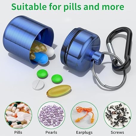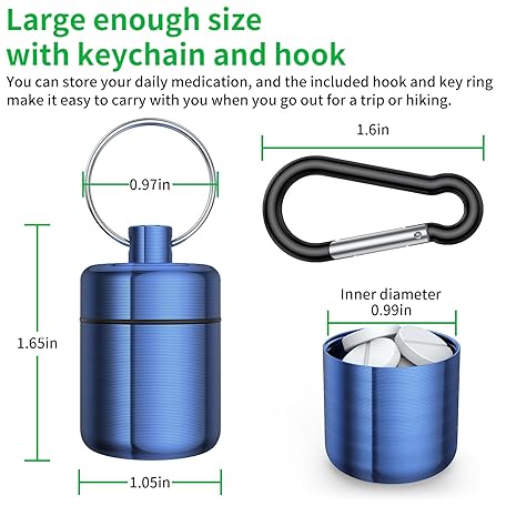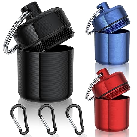 Small Pill Case, (3 Pack) Keychain Pill Holder with Strong Carabiners Portable Waterproof Travel Pill Container Carrier Mini Metal Pill Box Bottle with Keyring for Medicine Ear Plug Jewelry