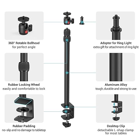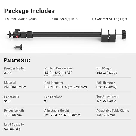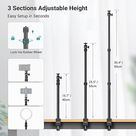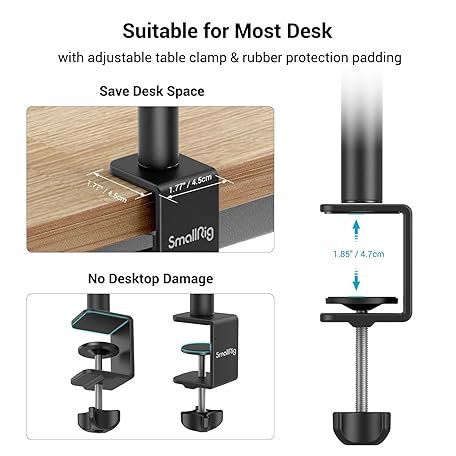 Thông tin sản phẩm SmallRig Camera Desk Mount Table Stand, Adjustable Light Stand 15"-35", Tabletop C Clamp for DSLR Camera, Ring Light, Live Streaming, Photo Video Shooting