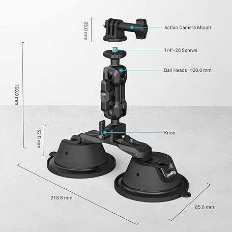 Thông tin sản phẩm SMALLRIG Camera Suction Cup Mount, Mount for GoPro, on Car Window, Windshield, for Sony DSLR, Lightweight Camera, Vehicle Shooting,Vlogging, Mobile Phone, Action Camera with Action Camera Mount - 3566