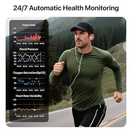 Smart Health Wristband, All-Day Continuous Heart Rate Blood Pressure Stress HRV Monitor, Improve Sleep, Wearable Activity & Fitness Tracker, 120+ Sports Modes, 60-Day Battery, with Free App, 2 Bands