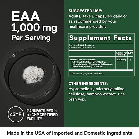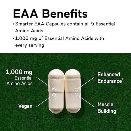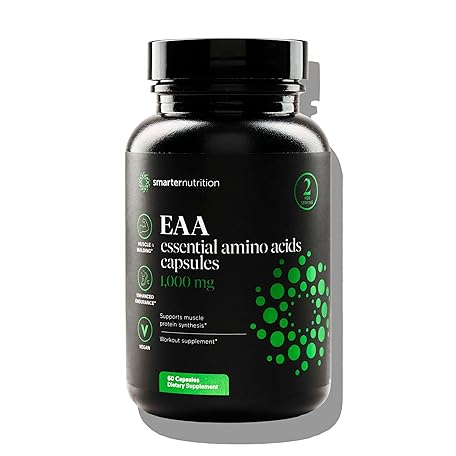 SMARTERNUTRITION Essential Amino Acids (EAA) Capsules - 1 Gram Per Serving of All 9 EAAs - Supports Muscle Mass & Exercise - Non-GMO, Vegan, Gluten Free - 60 Count[30-Day Supply]