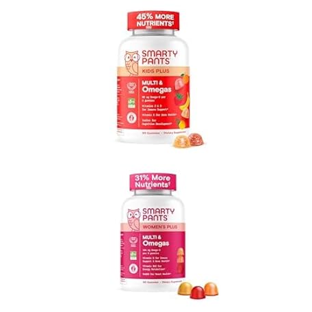 Thông tin sản phẩm SmartyPants Family Daily Nutrition Bundle: Kids + Women’s Multivitamin Gummies with Omega-3, Vitamins D3, B12, A & Zinc – Gluten Free, Non-GMO, Clean Label Certified, 60 & 90 Count (Pack of 2)