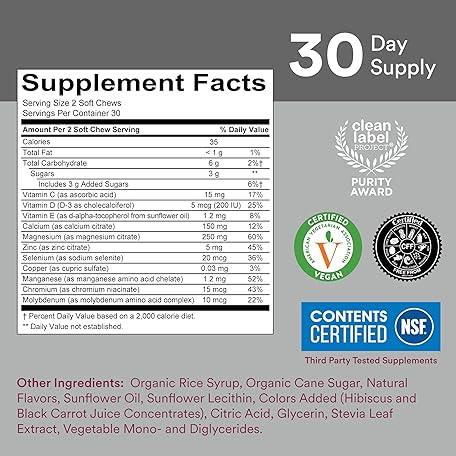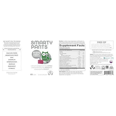 Thông tin sản phẩm SmartyPants Kids Mineral Chews: Magnesium Citrate & Calcium Supplement with Vitamin D3, Vitamin C, K2, Zinc & Selenium for Immune Support, 60 Count (30 Day Supply)