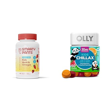 Thông tin sản phẩm SmartyPants Kids Multivitamin Gummies, Sugar Free: Omega 3 (ALA) & OLLY Kids Chillax, Magnesium Gummies Plus L-Theanine, Lemon Balm, Calm Chews for Kids 4+, Sherbet Flavor - 50 Count (Pack of 1)